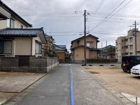 | 備考 | ※面積・寸法は分筆後に確定します。 区画Ⓑ 上水道宅地内引込なし/下水道宅地内引込なし ※区画Ⓑは上水道引込の際に前面道路下の上水道管共同利用者の同意を要します。 ※消雪負担金4,000円/年、居住時に井戸設置に係る一時金10万円(1回のみ) ※区画Ⓑ上の樹木類撤去売主負担。 |